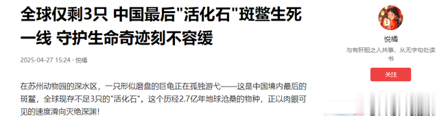 截止到2025年4月27日,苏州动物园宣布中国境内仅剩一只雄性斑鳖,而国外越南境内也只剩一只雄性斑鳖,也就是说全球仅存不到三只斑鳖了!
